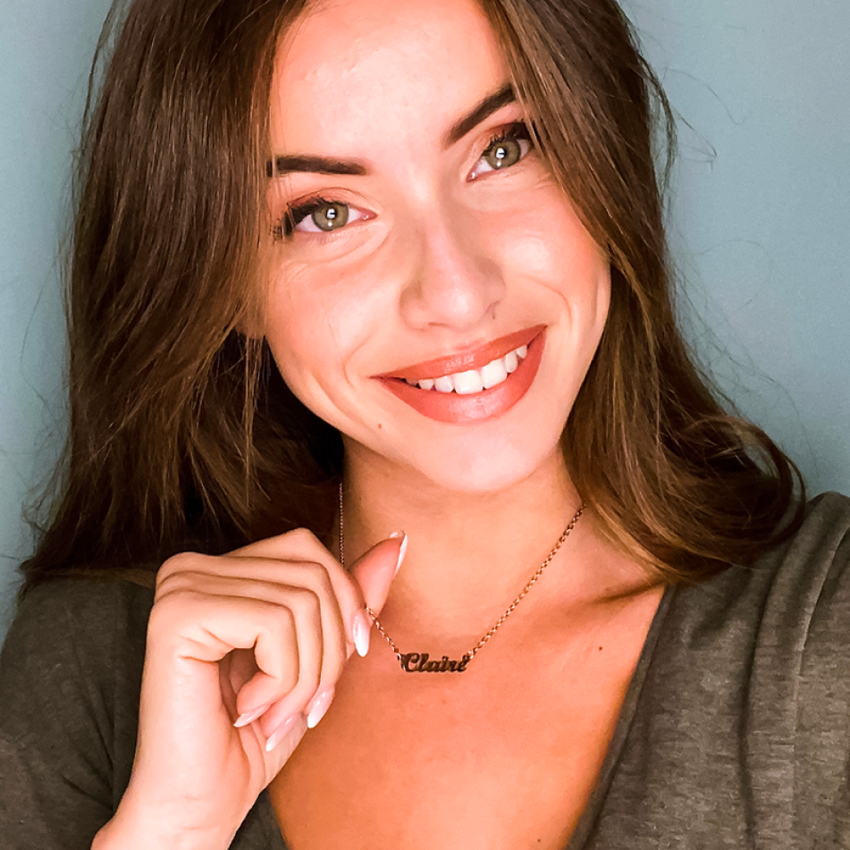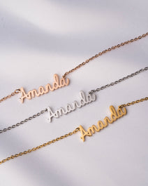 Jaja, ¡otra reseña mía! 😄 Supongo que esta es para la foto, ¿no? Si no, también tengo otra con “Timothy” en la tipografía Old English. ¡Me encanta! Lo llevo todos los días. Podría seguir hablando, pero solo estaría repitiéndome. ME ENCANTA MLN — su joyería personalizada es realmente de lo mejor.