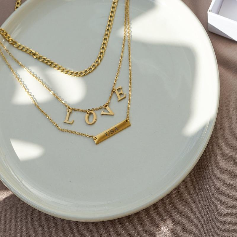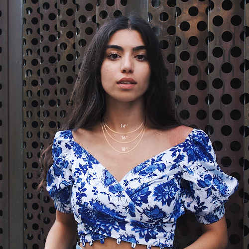 Hecho de acero inoxidable y bañado en oro, oro rosa o plata. Nuestros collares tienen una longitud ajustable de 40 a 45 centímetros y un grosor de 0,04 cm, permitiéndote ajustar cómo lo llevas. Llévalo a tu manera.