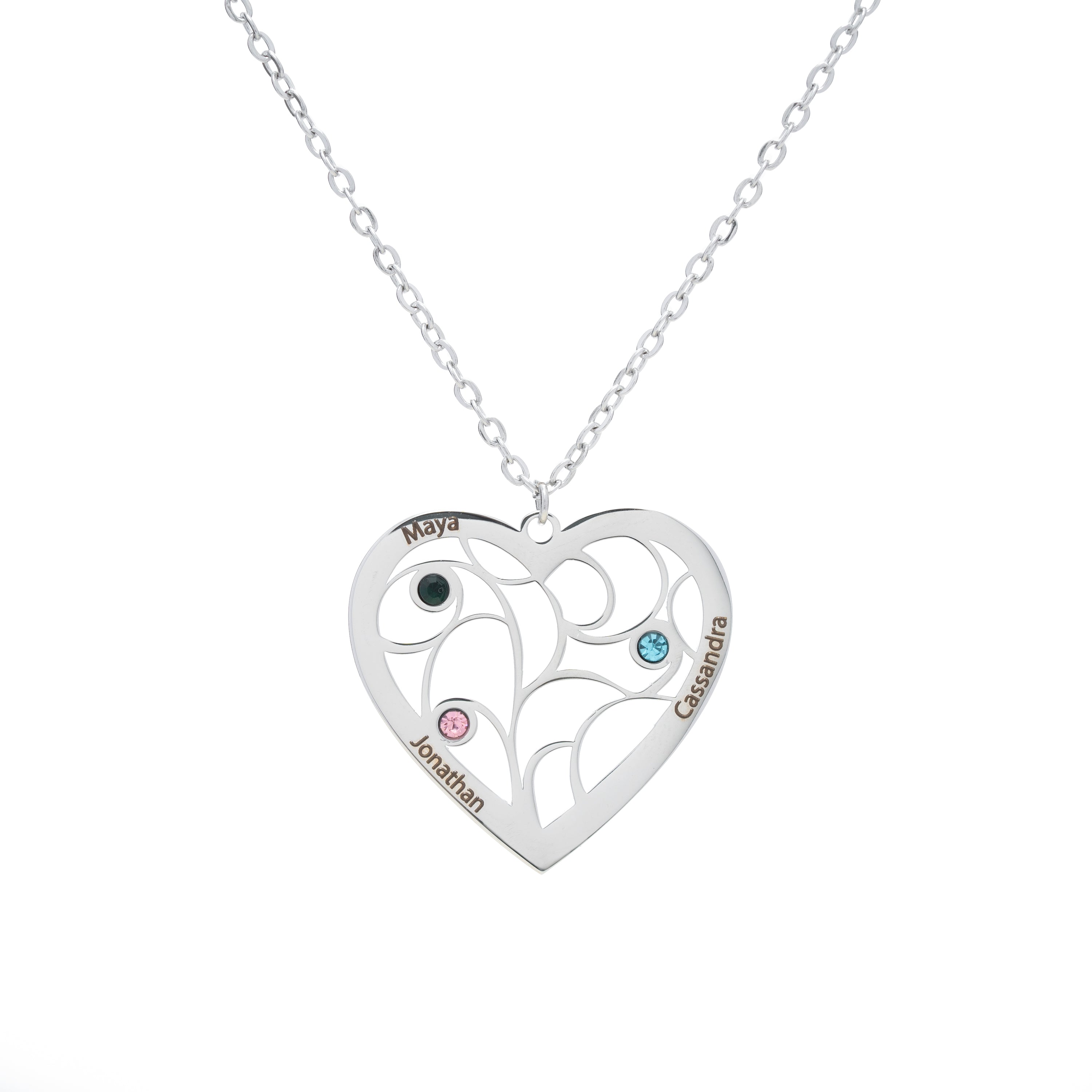 Collar Colgante Corazón Familiar con Piedras de Nacimiento