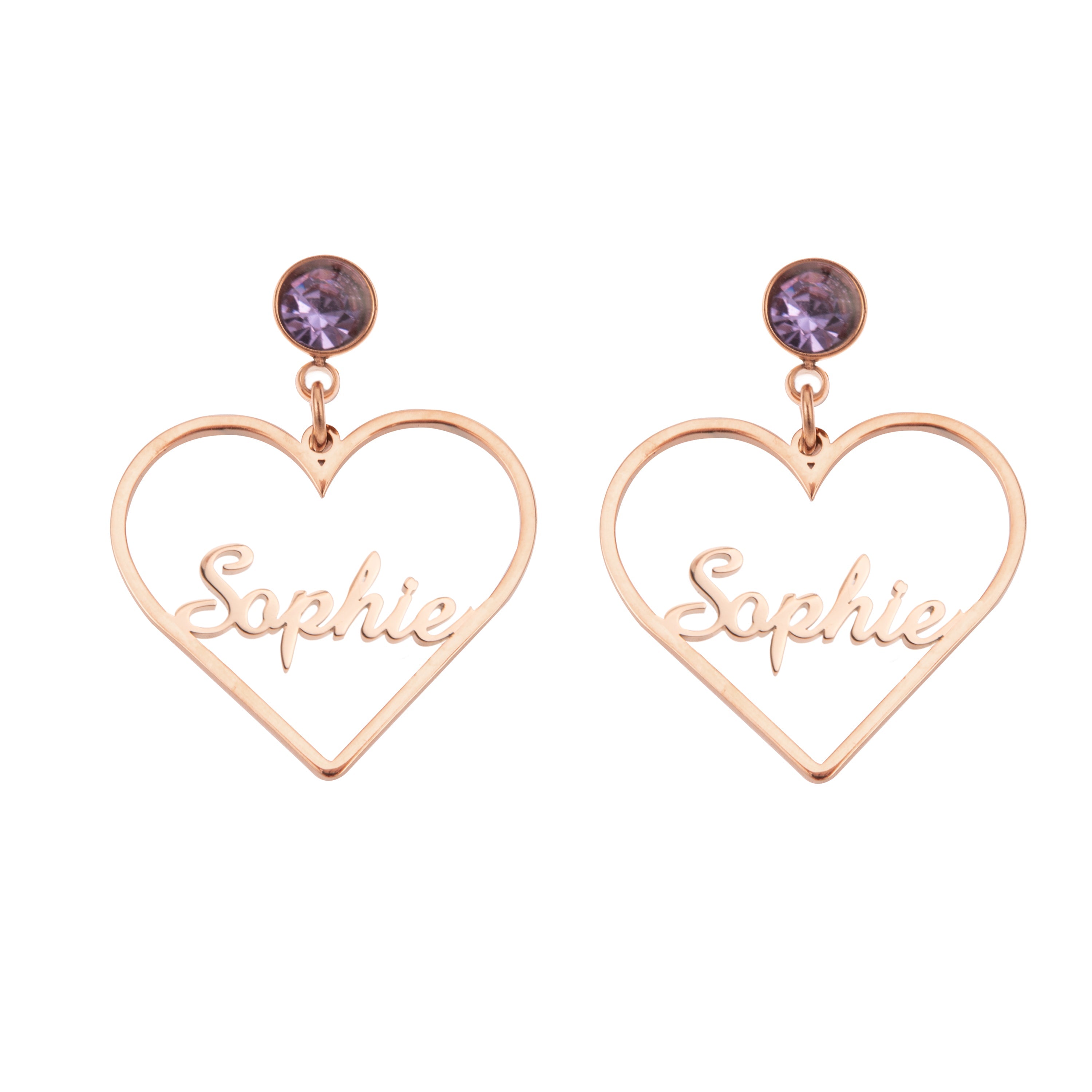 Cada pendiente está delicadamente grabado con el nombre o texto de tu elección en el centro del corazón, creando así una joya única y personalizada. También puedes elegir la piedra de nacimiento que adorna el cierre para añadir un toque personal adicional.