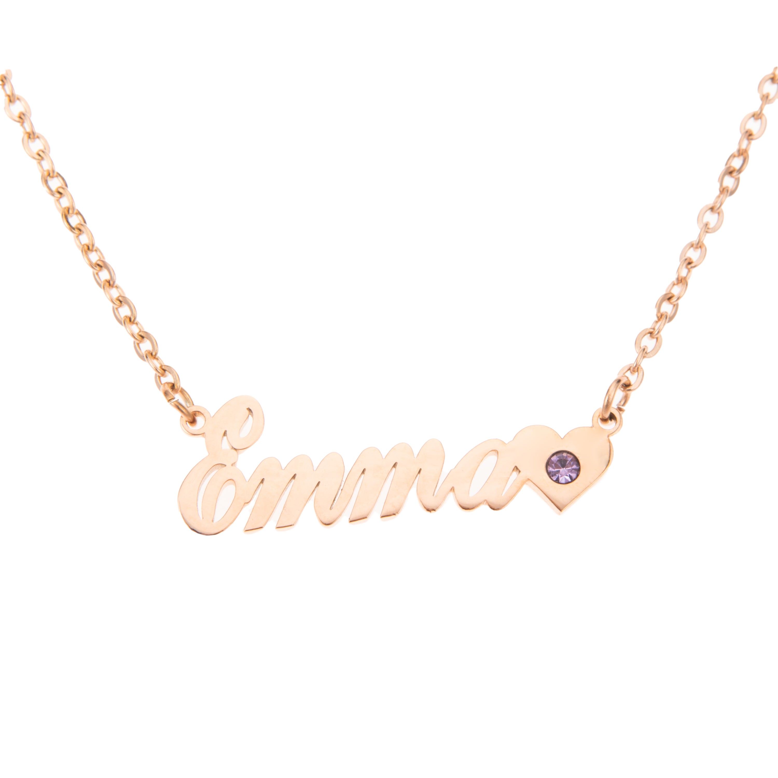 Añade un toque personal y elegante a tu atuendo con nuestro collar personalizado. Personaliza tu collar con un nombre o un texto de tu elección, para convertirlo en una joya única que te acompañará en tu día a día. Y eso no es todo: un pequeño corazón adornado con una piedra de nacimiento acompaña al nombre para añadir un toque de color y refinamiento.