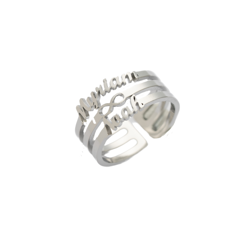 Anillo Infinito con Dos Nombres es una joya diseñada para celebrar tu estilo y tu historia personal.
