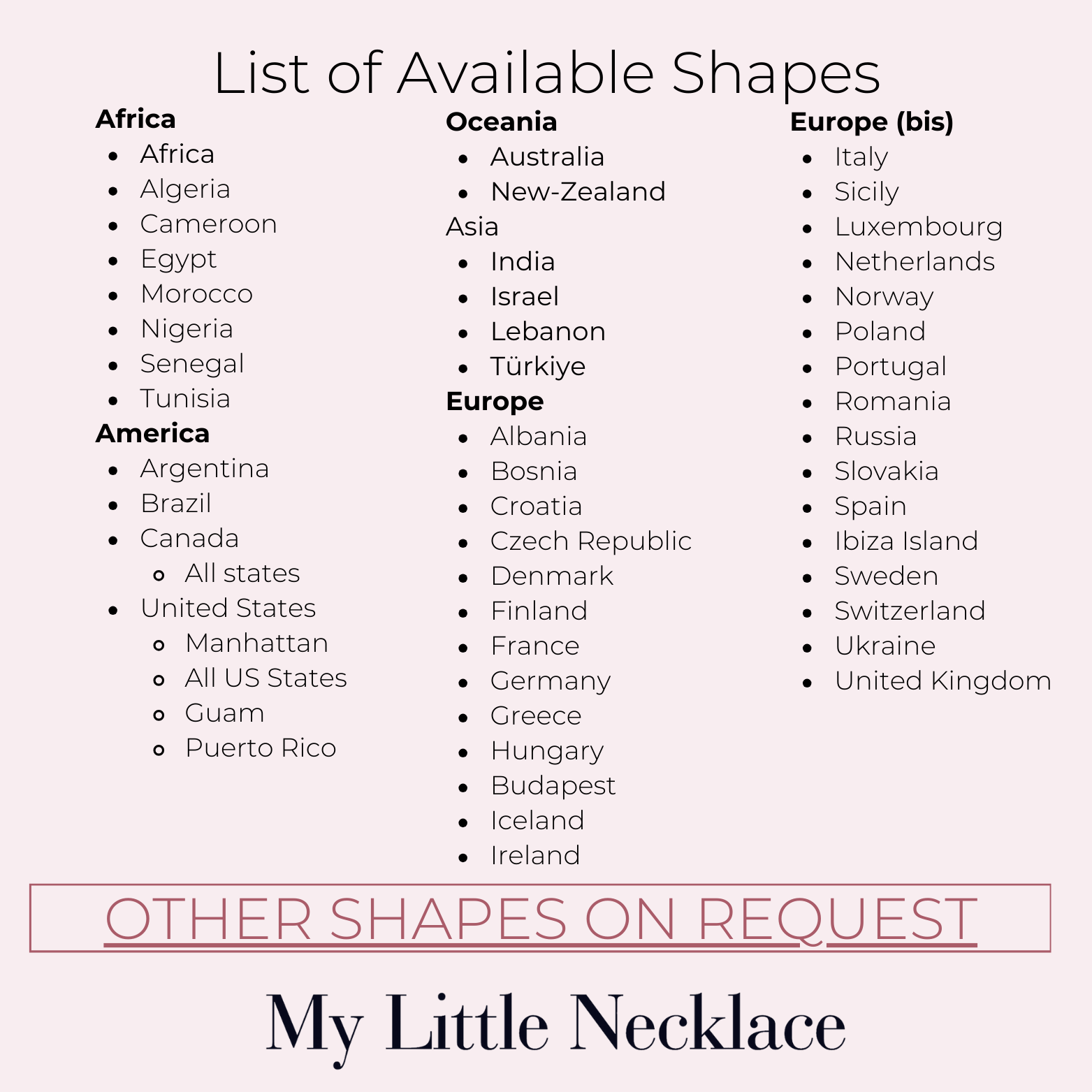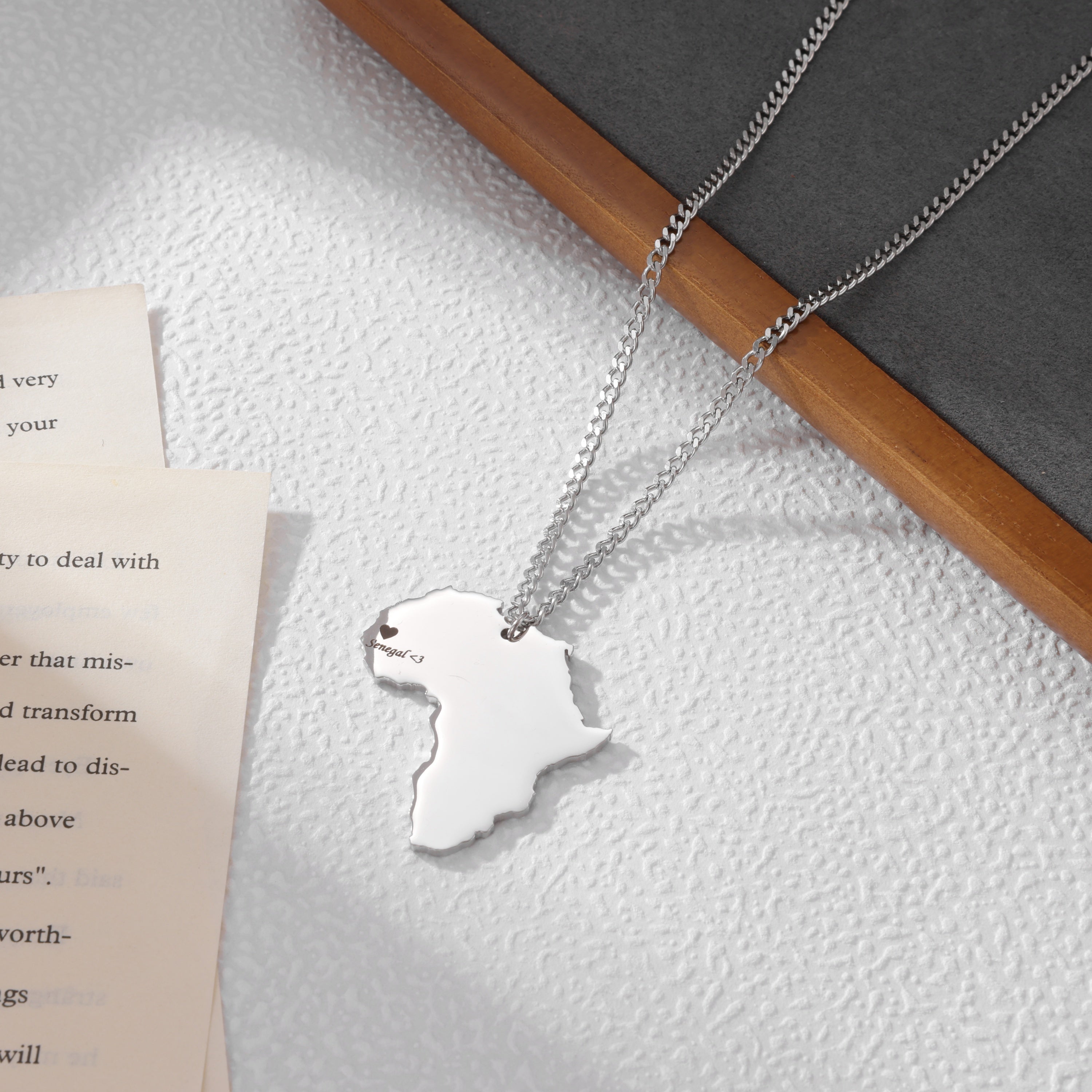 El Collar Mapa Personalizado (País o Ciudad) es una joya elegante diseñada para acompañarte cada día y dar un toque personal a tu estilo.