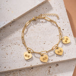 Cada corazón en esta pulsera representa un vínculo único y significativo en tu vida. Tienes la posibilidad de personalizar cada corazón con un nombre, una palabra o una inscripción especial. Estos corazones simbolizan las relaciones inolvidables y los momentos preciosos compartidos con tus seres queridos.